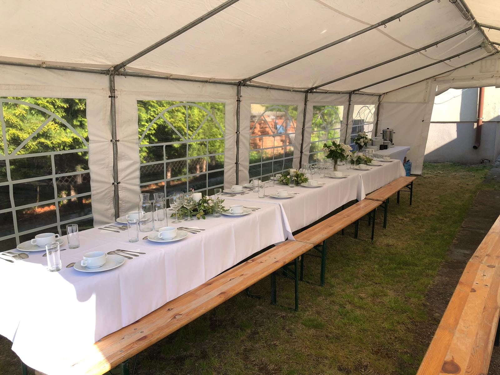 Prowadzimy wynajem namiotów na wszelkiego rodzaju przyjęcia plenerowe, stoły, ławki oraz pełne